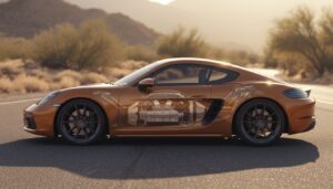 ポルシェケイマンのミッドシップエンジンレイアウト構造図